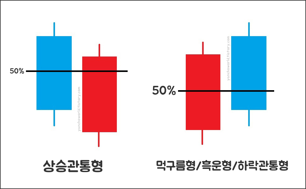 상승장악형>상승관통형>상승반격형>상승잉태형※ 먹구름형 (흑운형/ 하락관통형)